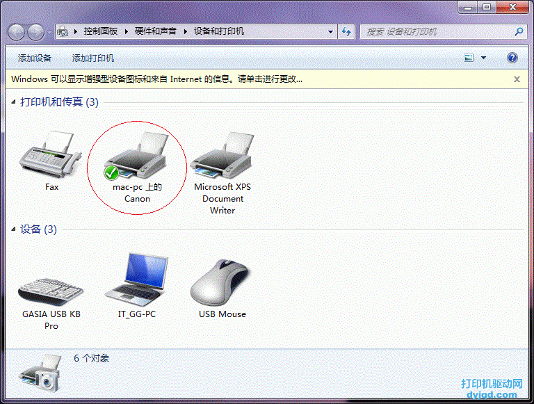 成功添加后,在【控制面板】的【设备和打印机】窗口中,可以看到新添加的打印机,如下图: